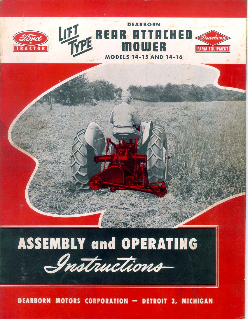 This is the 1950 publication of the Assembly and Operating Instructions manual, that gives instruction on how to assemble, attach, detach, use and maintain the 6' and 7' rear attached sickle bar mowers.
