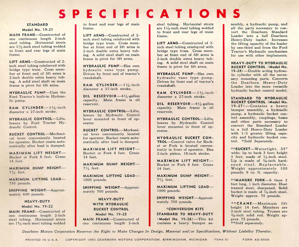 You may find the missing pieces at Just 8N's. We have the dealer parts book and owner's manual for your 19-22 here in our Manuals/Loaders library. Here are some specs on it: